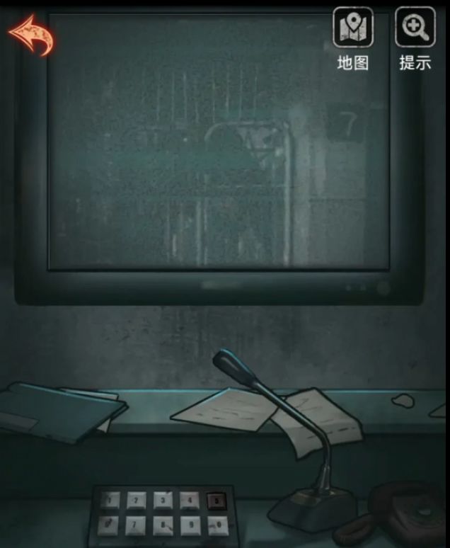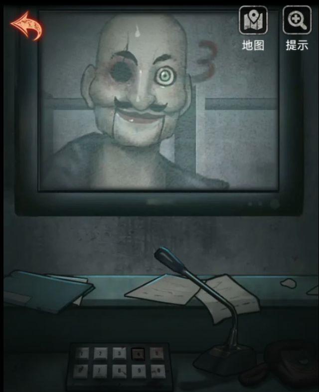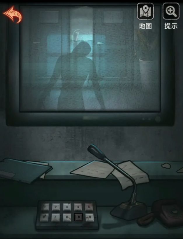 用刚刚拿到的钥匙打开镜子下面的锁就露出一个硕大的红按键,让人忍不住敲了下去,然后监控就打开了,我们根据盒子的数字提示,依次按下1549,对应画面中都有个数字,依次是圈圈的2,楼梯旁的7,木偶脑壳后面的3和诡异人影后面的1,最后这个1看不清楚可以自己出门看看的,懒得看的小伙伴前面米雪也有截图啦。