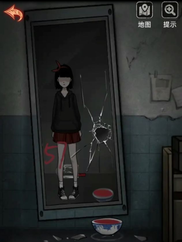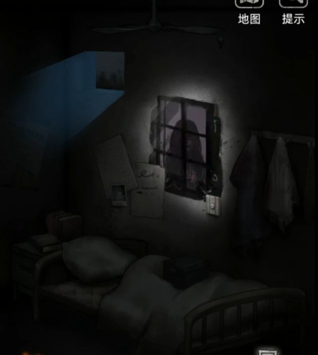 石头下面提示是不做亏心事不怕鬼敲门,这里我们见到鬼的地方就是镜子了,回到最初的2011病房,一砖头,不是,一石头敲碎镜子,从地上捡起镜子碎片,提示碎片很锋利,出门上楼再次回到检查室,用镜子碎片切开棉被拿到里面的钥匙。