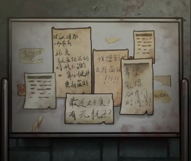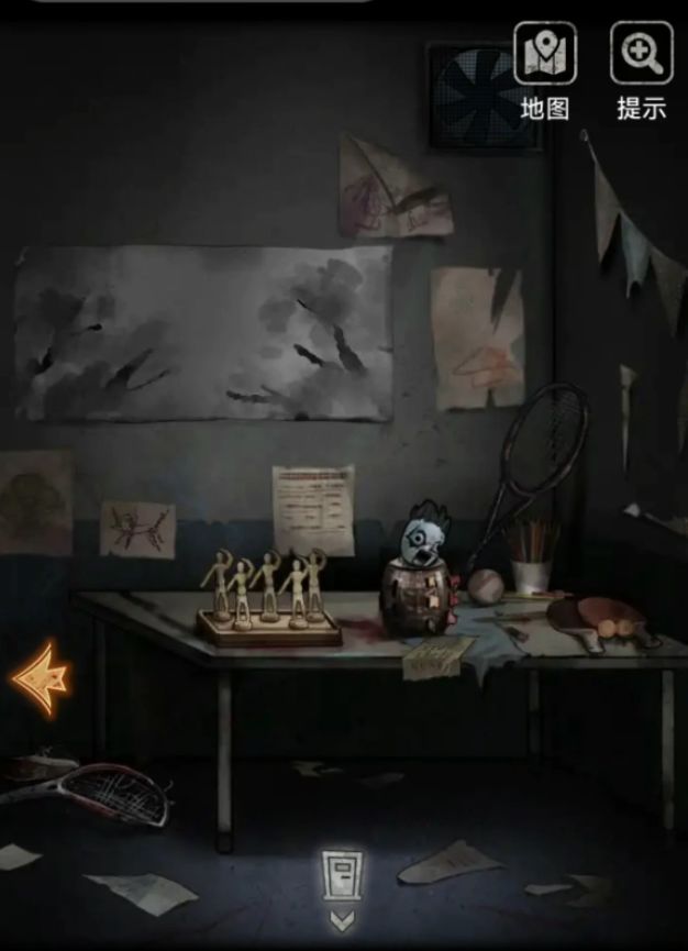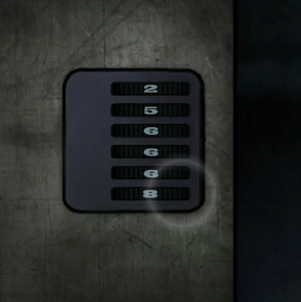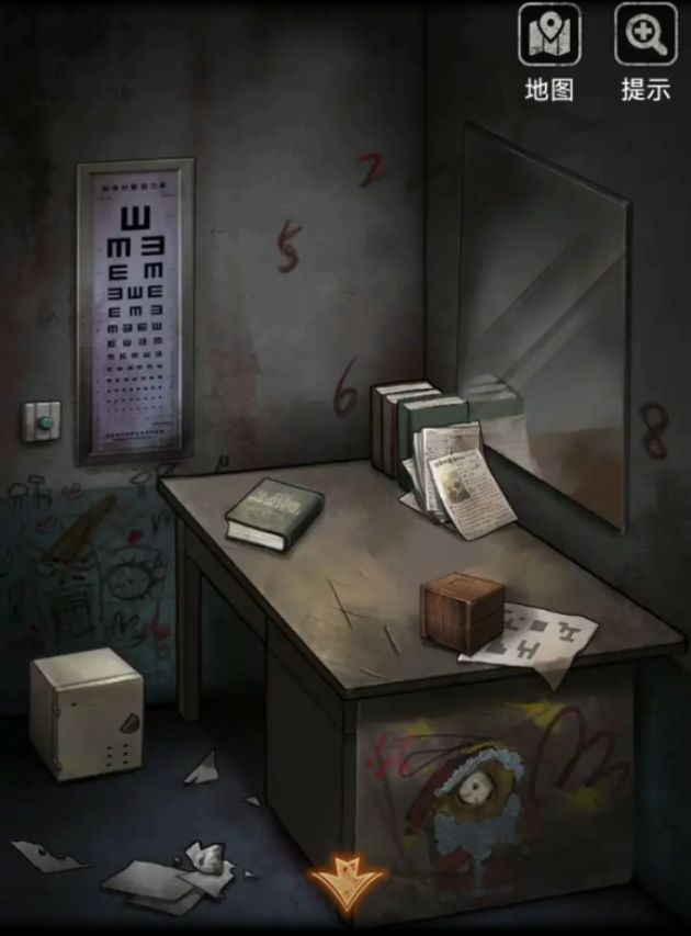 出门上楼再上楼来到检查室,用唱跳打篮球拿到的钥匙打开综合体鸡一按室的大门,又可以开始搜刮了,首先注意一下这里墙上写了好多数字,记一下2568四个,不知道顺序。地上有个特别特别容易被遗漏的线索,就是桌子下面又一个像是蝴蝶一样的纸条,纸条左边有一个白色的小点点,那个是按键,能捡起来的。