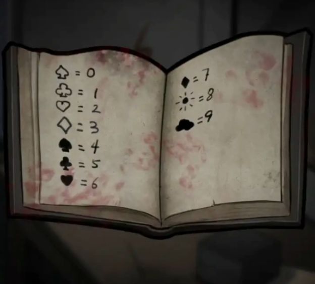 拼好后是一张照片,下面有一个很奇怪的符号,中间是:所以这应该是个时间的可能性比较大,可以记下来空心梅花、空心黑桃:空心红心,实心方片。照片拼好后就自动消除裂缝了,后面有一把钥匙拿走。