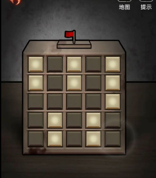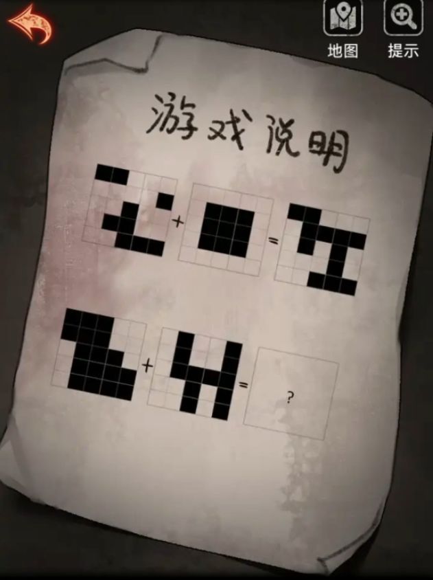 拿到按键后先解锁桌子上的盒子吧,盒子下面有提示求同存异小游戏,所以我们应该拼的就是黑白黑白黑,黑白黑白黑,白白白白黑,白黑白黑白,白黑白黑白,最好是用小格子草纸随手一画就可以了。