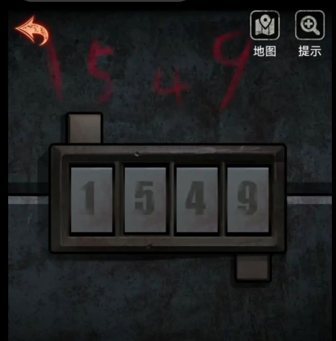再次转身转动1次镜片,这次看到了个四位数的密码盒,上面写着1549,很明显密码不会这么简单的,傻子才会照原样调整密码盒呢!