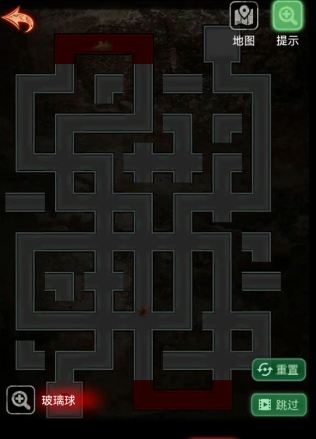 这里没有什么需要钥匙的地方,出门右转下楼再下楼来到院长办公室,竟然能用发泄室的钥匙打开院长办公室,细思极恐啊,进门先调查一下水龙头吧,想用小小的玻璃眼球堵住下水口就需要玩超麻烦的小游戏了,我们的目的是让眼球滚过特别脏的两个红色区域最终到达左下角,眼球的运动规律是撞壁后就会顺势转向,而十字位置不需要考虑重力只会直走,也就是我们需要给眼球设计一个撞撞撞的小迷宫,米雪设计的是这样的不知道还有没有其他走法。