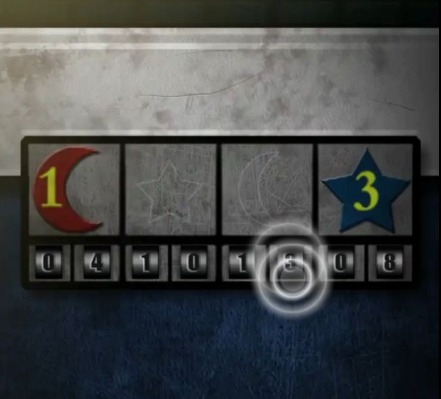 桌上的另一个密码盒就是星星和月亮的线索了,只不过盒子上原本的星星月亮只剩下红色月亮和蓝色星星了,还好我们在U盘中已经看到了剩下的红色星星和蓝色月亮分别是4和10,根据线索我们需要把原本带数字的和灯罩中星月数量相加,红色月亮是1+3=4,红色星星是4+6=10,蓝色月亮是10+4=14,蓝色星星是3+5=8,所以密码为04101408调整完毕拿到锋利的勺子。