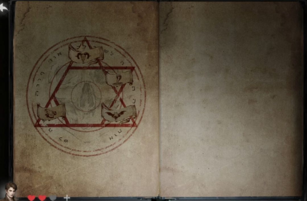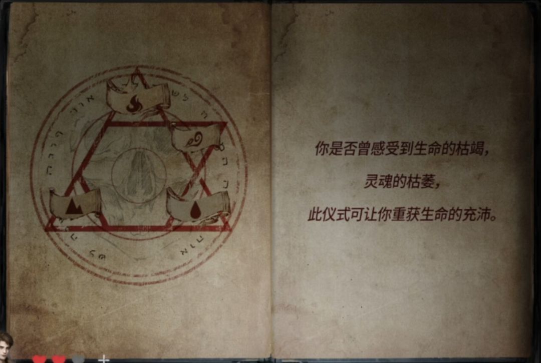 书上的重点就是三个仪式了,第一个顺时针依次是火-风-水-土,用来召唤恶魔许愿的。第二个顺时针依次是水-土-风-火,中间放容器汲取灵魂的。第三个顺时针山羊头-蛇-蝙蝠-青蛙,用来召唤恶魔的。