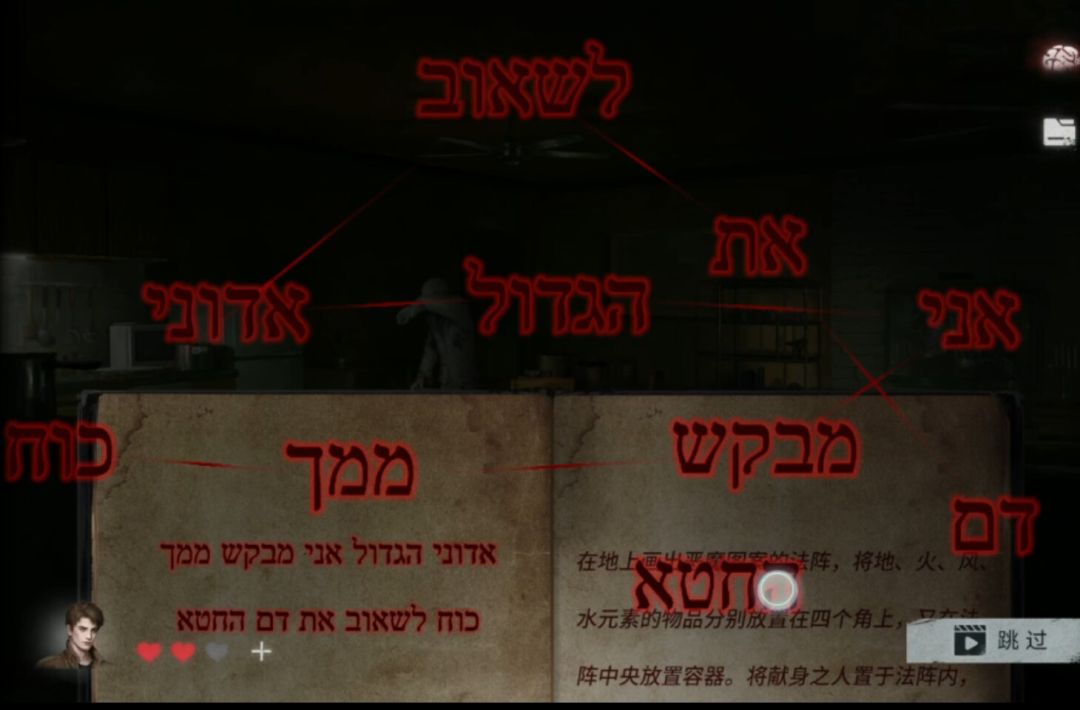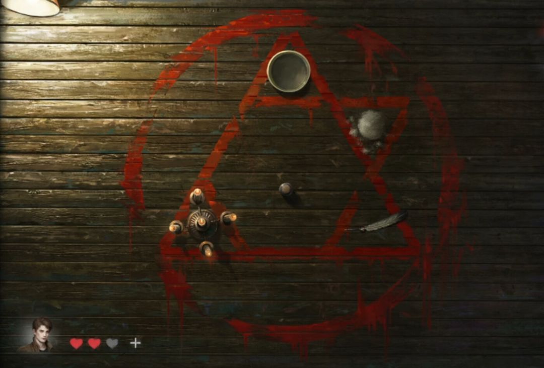 比起后面的小游戏这个算是简单的了,需要按照从右往左,从上到下的顺序依次点击浮动的鬼画符,前面的游戏应该是没有时间限制的别着急慢慢点,完成后获得了约翰的信物,然后剧情自动来到卫生间,把画和小瓶子放到浴缸前面火盆里就能自动点火剧情了,本章结束。
