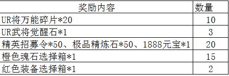 1000元:5级宝石任选宝箱*10 UR武将觉醒石*5 红色装备任选宝箱*2 超级神兵魂炼石*50