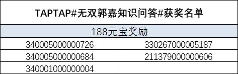 随机挑选5名回答正确的玩家获得188元宝