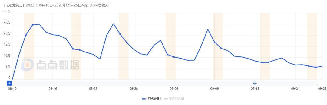 前段时间回顾暑期上线新游时,一款玩梗“进化全靠吞”但玩法较为“冷门”的游戏吸引了游戏日报的目光,它从今年游戏圈暑期档的混战中悄悄突围,成为同期新游甚至赛道头部,它是如何做到的?带着疑问,游戏日报专访了《飞吧龙骑士》研发商——心光流美CEO陈钰、《飞吧龙骑士》制作人韩宇,以及雷霆游戏发行负责人丢丢酱,复盘了《飞吧龙骑士》首月表现、也谈到游戏玩法与商业化的设计理念还有游戏当前的问题与未来...1►《飞吧龙骑士》数据表现首先来看看这款游戏的数据表现。《飞吧龙骑士》于8月11日正式上线,点点数据显示其上线至今iOS免费榜最高冲至榜首Top 1,iOS畅销榜最高来到Top20。此外根据点点数据显示,截至9月25日,《飞吧龙骑士》在iOS端取得了221W下载量以及4461W流水。查看下载量与收入量变化趋势发现,《飞吧龙骑士》的下载量在“开服红利”阶段结束后并未有大幅下降,近20天iOS端每日下载量平均在3.4W,而《飞吧龙骑士》在iOS端的收入浮动也不大,在卡池更新时会上升,其余时间正常回落。