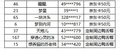 恭喜以上幸运玩家中奖!辛苦各位玩家在七个工作日内添加联系方式QQ:565469107,兑换奖品哦~(7个工作日内没有联系工作人员视为放弃奖励)