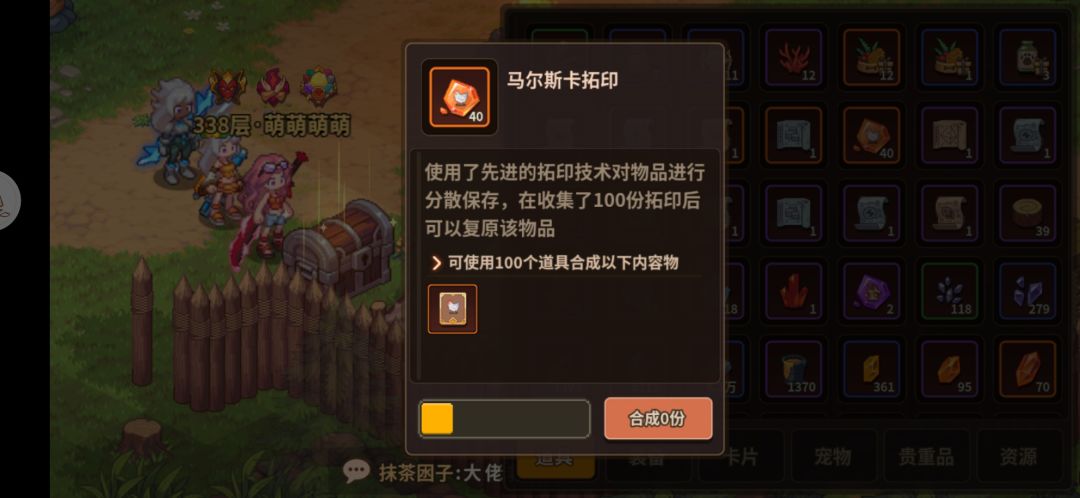 A30:当某项资源满仓时看板将不再生成该项基础资源,转而生成其对应的高阶衍生资源。后期常用卡仓库的方式在看板处获取高级资源。木材对应宠物食物,矿石对应强化石,粉尘对应卡片经验瓶,魔晶对应加速装置。具体数量见攻略链接里的营地其他功能篇:整点随心所欲的萌新保姆级攻略(下)