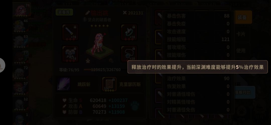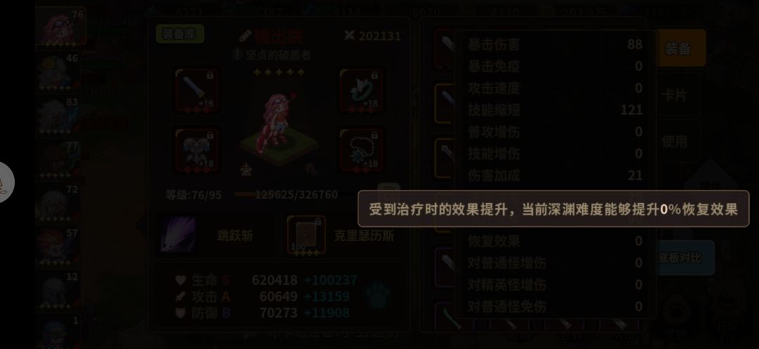 A42:由于萌新前期续航约等于无,所以主升“血球强化”,前期猛猛推图的时候升“遗迹探索”和“状态时长”,卡关刷装备的时候升“幸运之星”和“幸运时长”,看自己图内buff情况升“状态上限”,没有多余资源不要升“宝物搜寻”和“篝火强化”。关于为什么不升“宝物搜寻”见攻略链接里基础资源篇:整点随心所欲的萌新保姆级攻略(下)