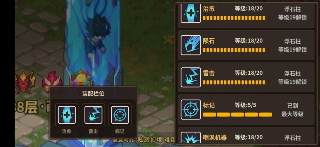 A48:萌新前期一般带治愈、雷击,解锁标记后带上标记。治愈不多说了,前期萌新除血球外唯一一个血量回复手段,在人物跑动时放置可多回复超多血量。雷击造成单体眩晕,在打断boss持续性技能/有前摇技能时非常好用。标记是唯一改变人物攻击目标的技能,解救后排非常好用。使用恐眼主c的还可以带鼓舞。