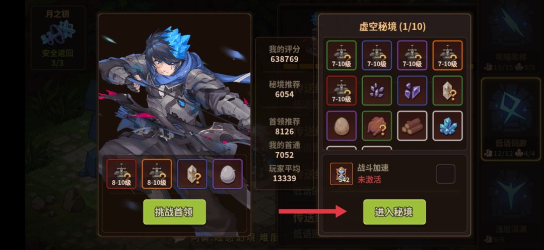 A5:打开深渊第二章节,点击右上角领域首领古托姆,看到界面右下方“进入秘境”了吗?这就是秘境一,简称秘一。