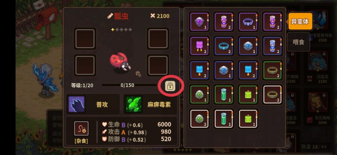 A19:点击要被吃掉的宠物,在宠物界面点击经验条后的🔒图标查看是否将被融合宠锁定。如果锁定了,点击解锁,然后返回融合。