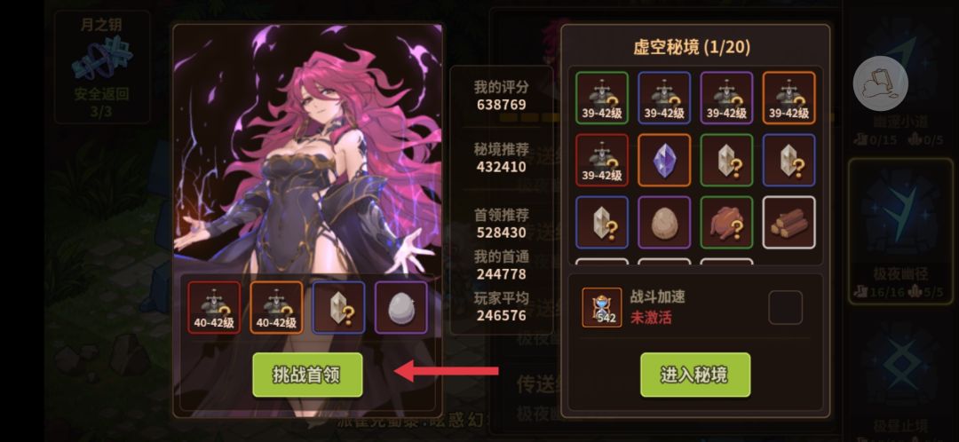 点击左边“挑战首领”,看看自己是不是没打首领。