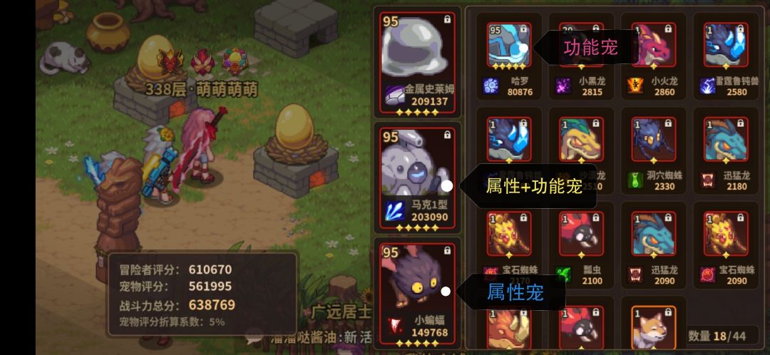 目前游戏内主流宠物有金属史莱姆(功能性与属性双佳)、史莱姆(功能性回血)、哈罗(功能性护盾)、熔岩龙(功能性加buff)四种。其中熔岩龙提供的buff与其属性无关,所以无红的话养绿蓝紫任一品质到4星即可(感谢评论区小伙伴补充),其余三种只推荐养红。