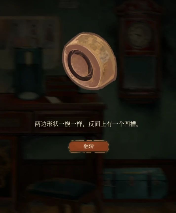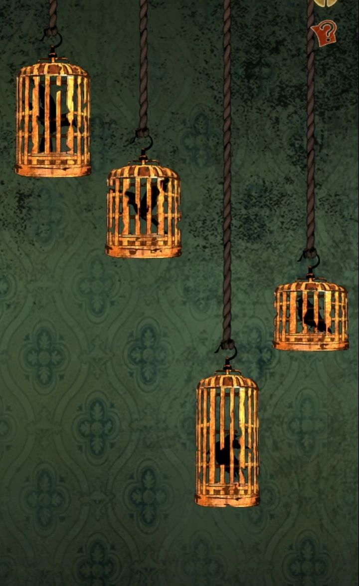 然后后左转调查上面鸟笼,按住鸟笼可以向上或者向下拖动,调整到和旗袍图案相同也就是从上往下顺序为1243时候鸟笼全部亮起,退出来到大场景就能在椅子上看到一个钟摆,拿走。
