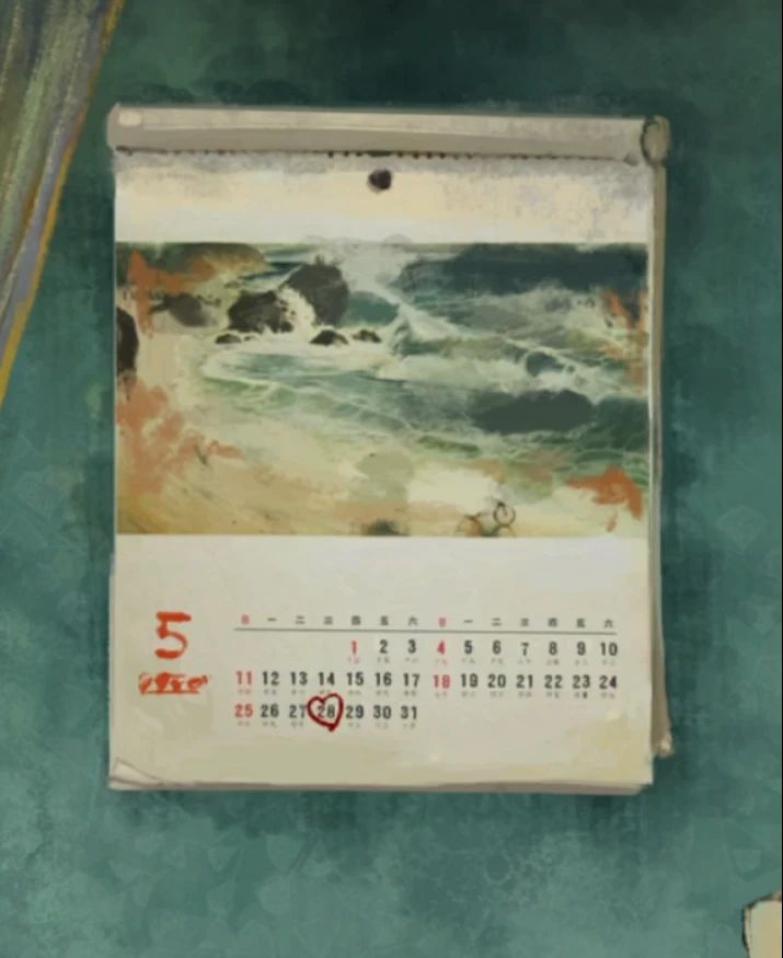 进入镜子暗室后第一个房间先拿走左边中间玻璃杯里面黑色东西,你以为是一根吸管,米雪也以为是一根吸管,但是,他是一根螺丝刀头,所以把它和刀柄组合起来获得一把完整的螺丝刀吧,拿走左边桌子上烟灰缸和右边衣服口袋里的火柴,记得看一眼后面日历,红色爱心标注5月28日记下来。