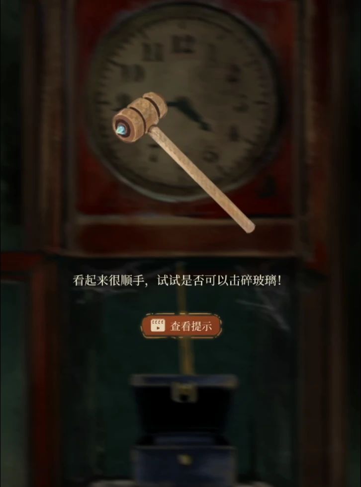 这次打开正中间抽屉获得一个螺丝刀把手,下面板子提示可以打开,所以我们还需要一个螺丝刀头,右下角灯泡拿走,这样三个灯泡也已经齐了,这里先点击物品栏查看木槌可以拆开,拆开后再调查头部,会提示翻转,翻转后就发现一个凹槽了所以我们需要一个能镶嵌进去的东西。