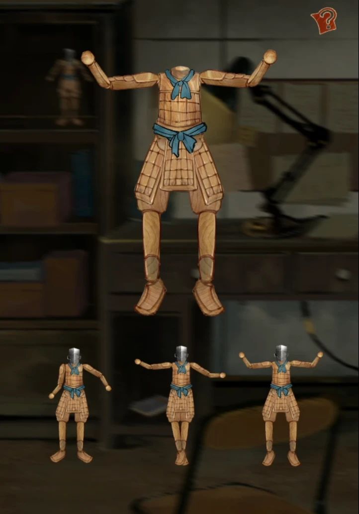 完成第三个动作的时候小人的头会掉下来,算是小高能吧,然后发现小人的头是个磁铁,话说用身子当把手不是更方便么?感觉调整了个寂寞,右转到地球仪场景,用磁铁将地球仪下的柜子中小球移动到相同颜色的位置,注意有两个蓝色小球,比较亮的那个在第一个,放错了的话点一下小球小球就会掉下来可以重新放置,放对了小球会亮起,全部放对后小球从下面洞洞滚出来挨个拾取。