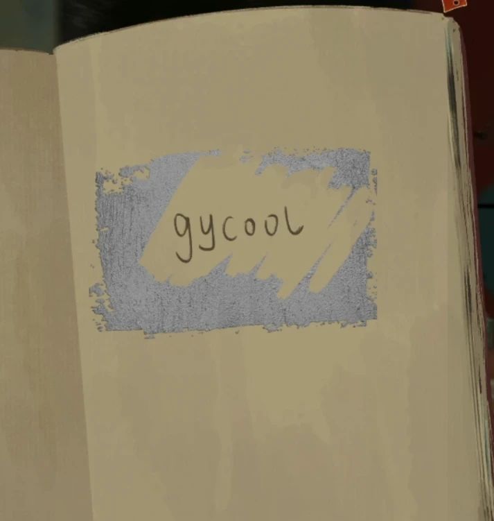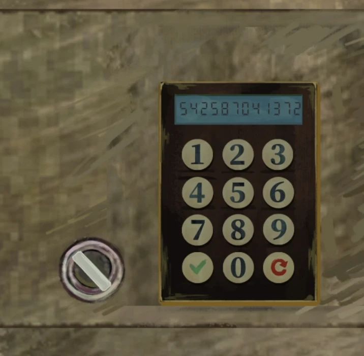 左转来到刚刚解密后露出的保险箱,输入密码542587041372点击左下角确认后插入钥匙就能打开保险箱了,里面只有一本带刮刮乐的书,刮开刮刮乐获得密码gycool,回到电脑输入密码打开电脑,吐槽一句这个密码为什么输入的时候还会自动屏蔽录制啊!