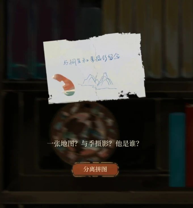 这里要注意组装的时候先放钥匙杆,其他放的时候不要贴着钥匙杆放,大一点的齿在左边,组装完毕后获得完整的钥匙,来到第一个场景的书柜用钥匙打开书柜,先不要管左边的按钮,按钮右边有三本书可以调查。