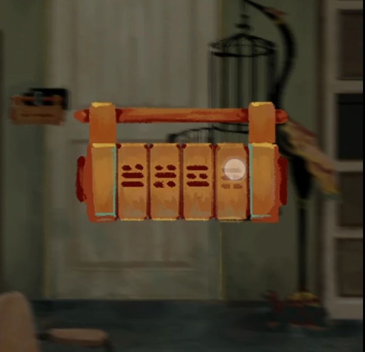 查看一下下层拿到的纸条,数字83251764没有重复的,旁边还画了个狮子头,看来就是咬手玩具按牙顺序了。熊猫上面的抽屉点一下发现卡住了,用护手霜润滑后打开又获得一截钥匙,但是现在还不全无法组装。
