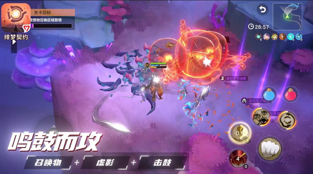 元气锣鼓重重砸下,衍生烈焰幻影。幻影经过红鼓,又将引起共鸣,爆发赤红色的狂澜!通过提升红鼓驻场数量,可打出鼓声齐鸣、烈影丛生的连招效果。再配合持续环绕的元气飞弹,影宗将成为一道战场上绚烂又凌冽的身影。
