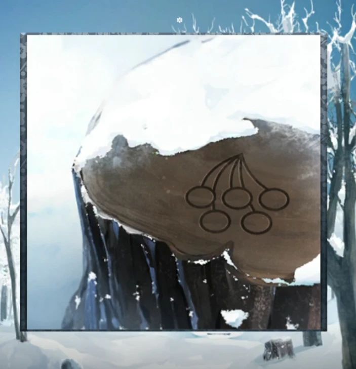 第二章剧情后后退来到稻田场景,右转是小溪场景,再右转就是树桩场景,这里查看一下树桩图案会提示是果实标记,往前走选择相同标记的那边就能走到大树了,捡起树下面的树枝拿到红色果实,再点一下雪地提示可以在这里做雪兔,用手指搓一搓屏幕拿到雪团,点开雪团,点一下树枝再点雪团就能拿到雪兔了,返回木门把雪兔放在门前本章结束。