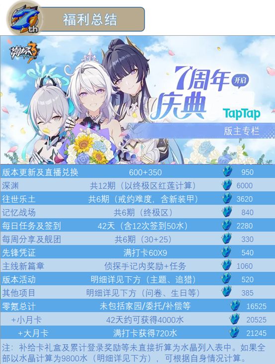 无论是刚刚入坑的小萌新,还是久久陪伴的老舰长,能在此刻的崩坏3相聚都值得且行且珍惜,感谢各位的阅读。欢迎大家积极讨论友好交流,推荐多多参与TapTap崩坏3论坛活动哦。预祝舰长们假期愉快、尽情享受周年庆典,相约在七周年的休伯利安号~崩坏3,启动!