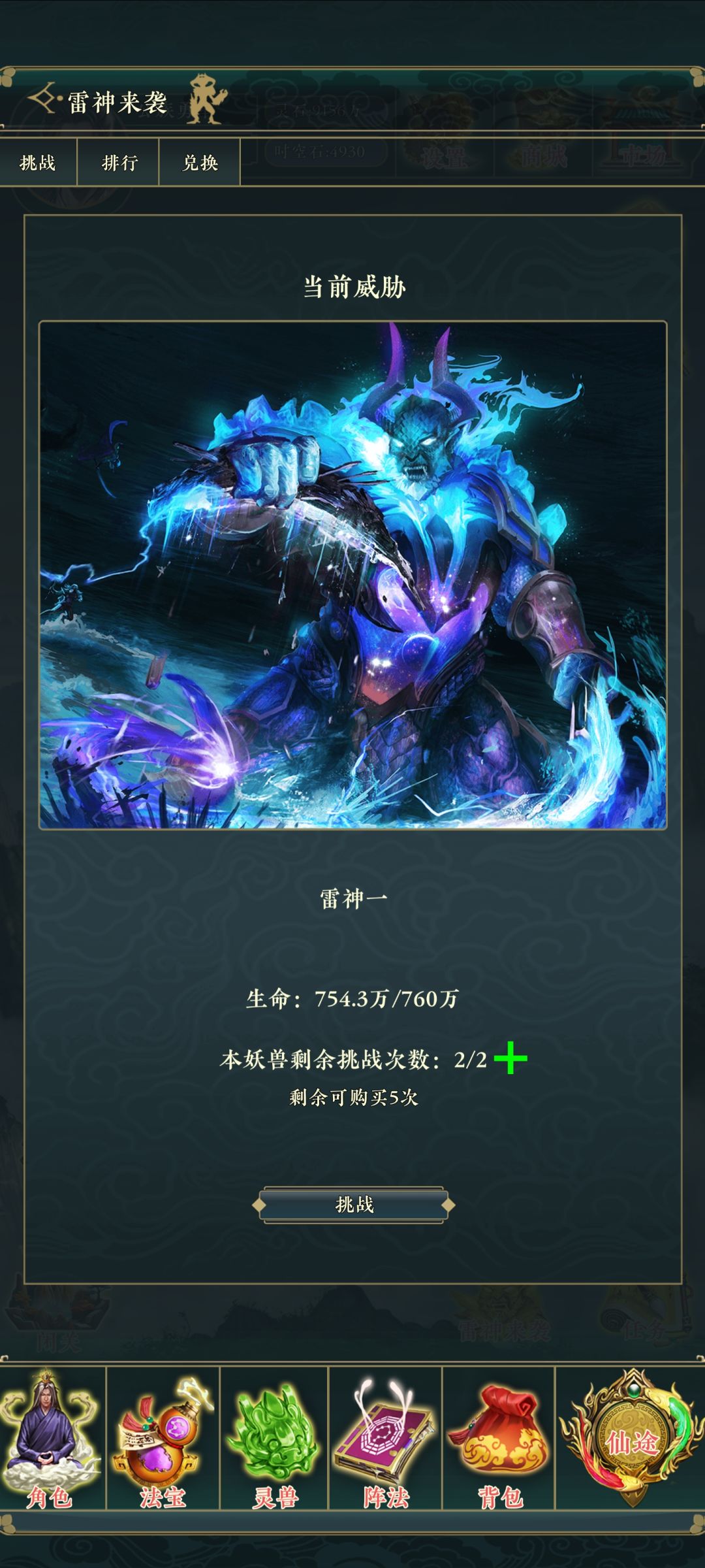 雷神的号角震颤了洪荒大地,西方的神明侵入了这片初生的世界,全体修行者们,团结起来!全服玩家可以一起挑战雷神,造成伤害最高的玩家将会出现在排行榜的榜首,并向全服玩家广播他的丰功伟绩。