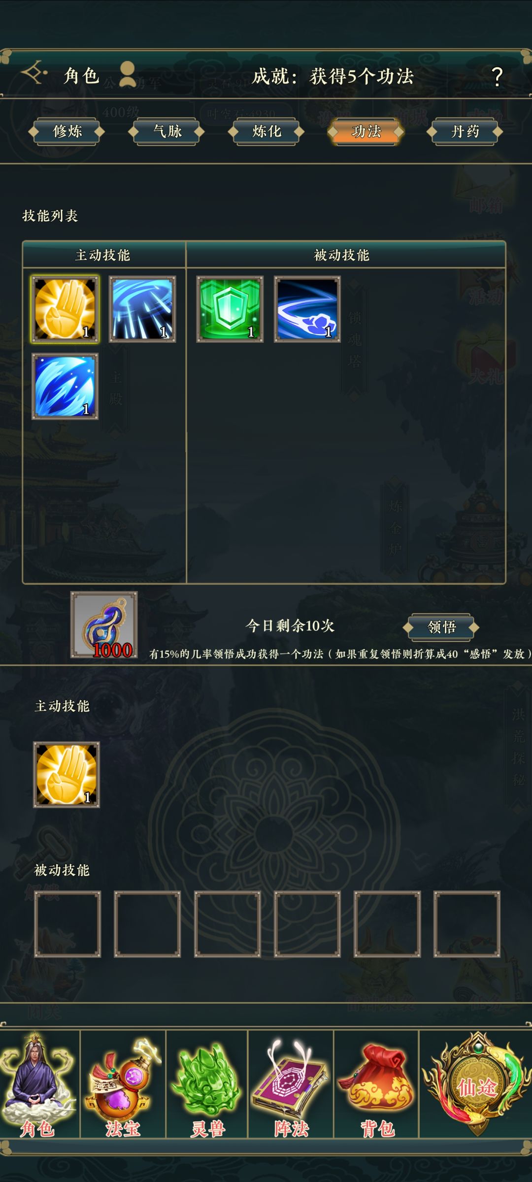 法宝各有特色,但主角的定位我们模拟了一套更加开放、有趣的玩法。主角可以通过领悟可以获得各类技能,同时对技能升级。