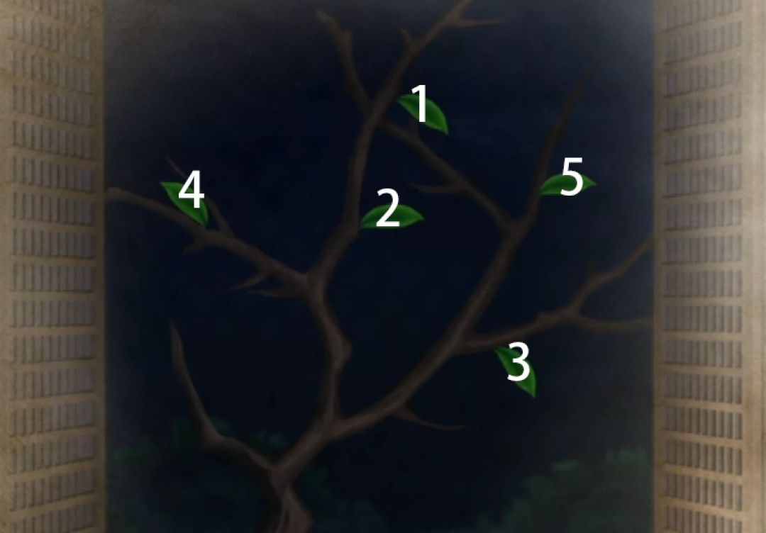 回到罗盘的位置,打开罗盘后面的窗子,点击一下外面的树就开始长叶子了,点一下长一片,记一下叶子生长的顺序,记好后这里就没有其他信息了,再次点击罗盘回到现在时间点。