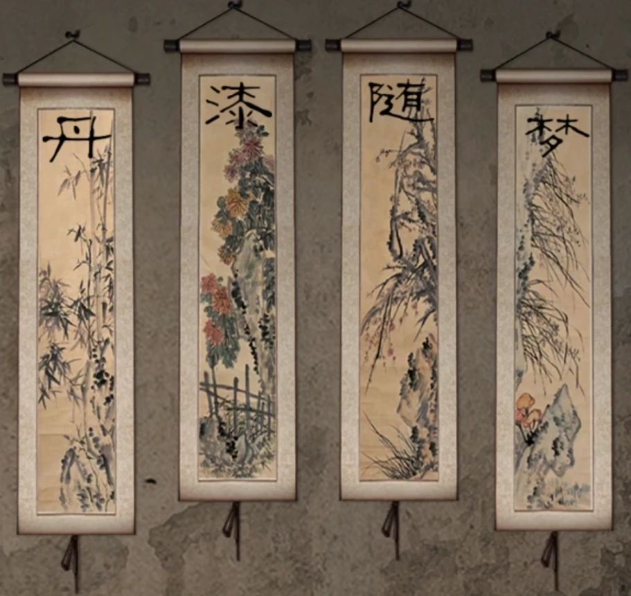 回到现在查看右下角的箱子,确认过图案和灯中间的图案一样,也就是顺序和灯上的图案相同即可,开始调整,调整完毕后打开获得一张画卷,后面的墙上刚好缺少一张吧,挂上后调整顺序为竹-菊-梅-兰后画卷出现文字丹漆随梦,记下来并且调整左边书架上的盒子,打开后拿到另一盏莲花魂灯和纸条,重点就是需要在水面点燃三盏魂灯并且使用引魂铃。