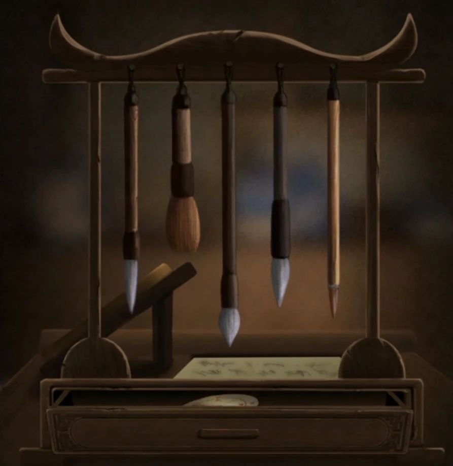进入书房后先点击罗盘进入过去吧,因为罗盘有残缺所以刚开始只能看到书桌部分,查看一下笔架发现按照这个顺序就能打开暗格了,所以再次点击罗盘回到现在调整笔架上笔的顺序,完成后获得罗盘碎片,在罗盘使用罗盘碎片再次回到过去,这次战争迷雾消失了。