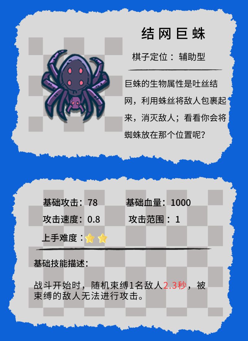 本期给弈士们介绍的是辅助型棋子——结网巨蛛