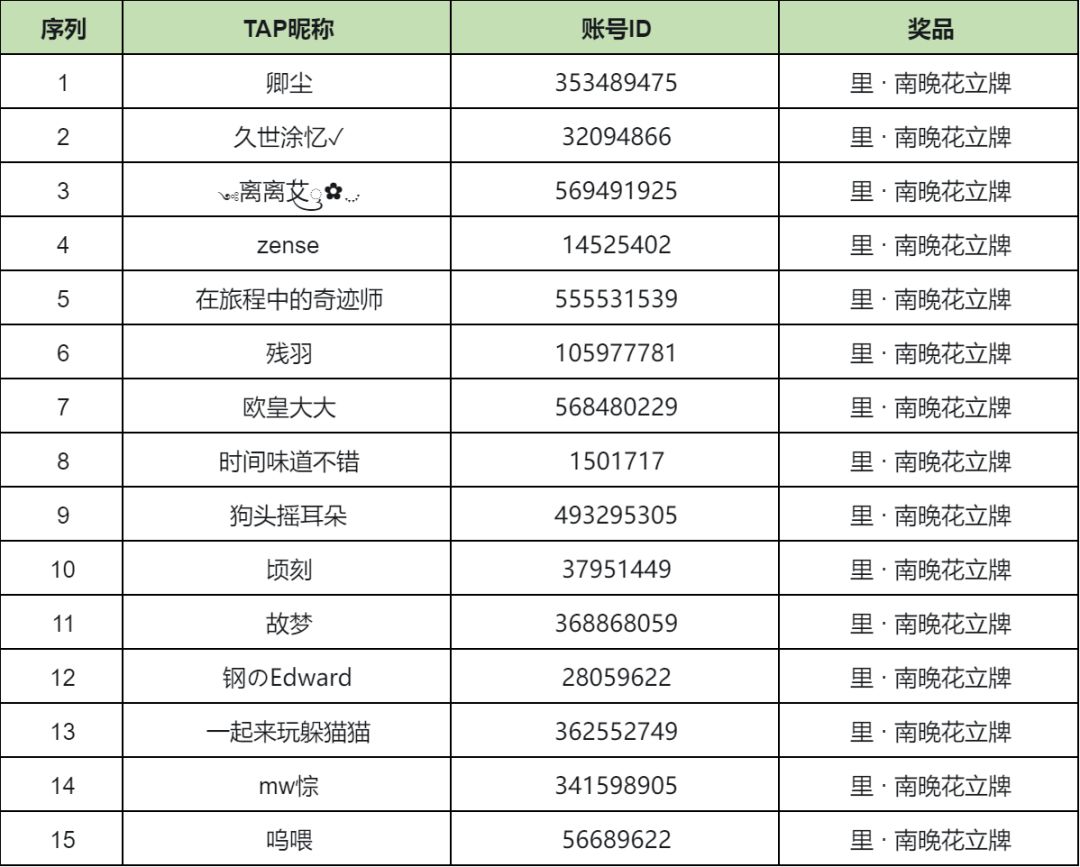 2. 活动结束后会在TapTap论坛、微信公众号内公布获奖者名单,兑奖日期为14个工作日,逾期不再发奖,用户需自行留意开奖信息,不作另外通知;
