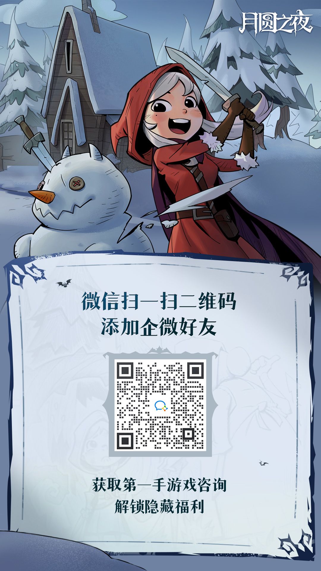 添加我们的月圆之夜企业微信好友,解锁隐藏福利,获取游戏一手资讯因目前我们的人力有限,每天的添加上限为2500人,如遇无法添加的情况,请隔天再次进行尝试