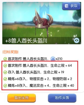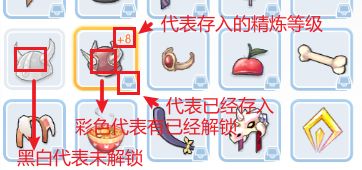 ②存入:将头饰存入到冒险录即可获得该饰品的存入属性,可购买或制造都可以,但部分头饰存在精炼存入,+6解锁和+8解锁,即存入对应精炼的饰品即可激活,红锤饰品也可激活和存入。