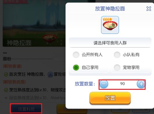 ①烹饪解锁:烹饪到90件即可解锁该料理的属性,当然可能存在成功率的原因导致要做的更多,最终获得90个成品即可解锁熟练度lv10.