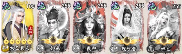 这个阵容还有一个变阵,将观世音换成齐天大圣。妲己速度快可以第一回合加盾,带个仙术守护,全体都有盾,云霄第二回合也可以加盾;在这个时候,观世音的伤害分摊就没那么必要。在保证了自身生存的情况下,我们可以换成齐天大圣来打出更多伤害。