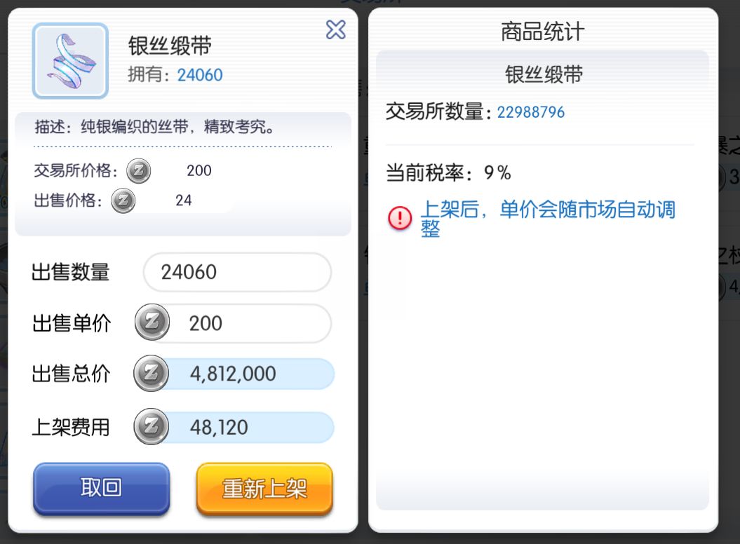 一天卖几百w东西都不过分,加上挂机,每个月稳定收入都是9e左右的。所以一定要积极卖材料卖东西卖图纸~