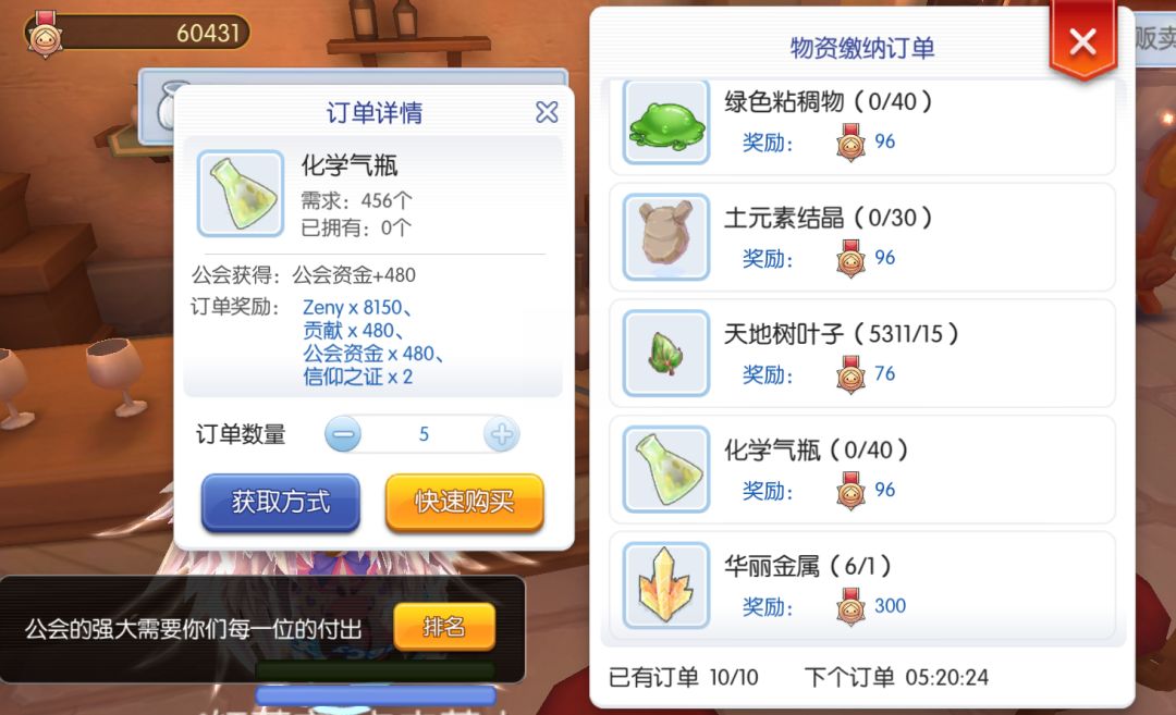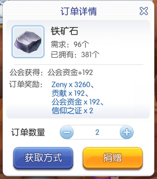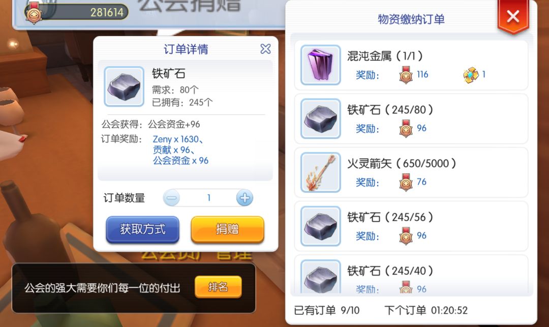 公会贡献物资缴纳订单,一般有10个,新进公会第二天只有2个-3个