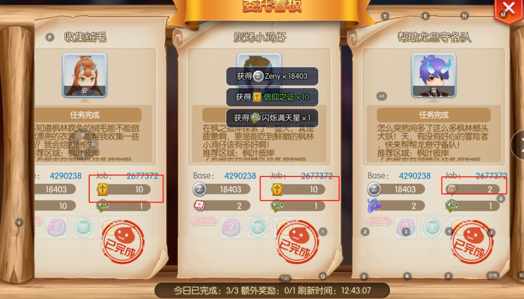 三个角色荒境任务,打5个精英怪,一个角色能出4瓶大经验药水的材料,云海地图缆车,可以每个角色都兑换符文那些,乌龟岛日常自动完成3个,几率出乌龟壳。