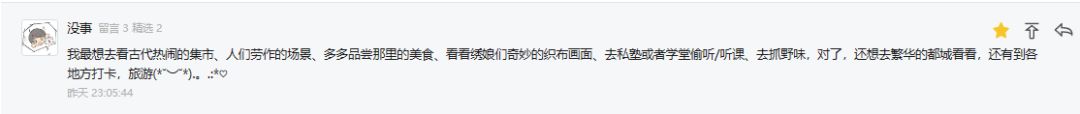 也有大人说想去看古代热闹的集市,看人们劳作的场景,多去品尝那里的美食~