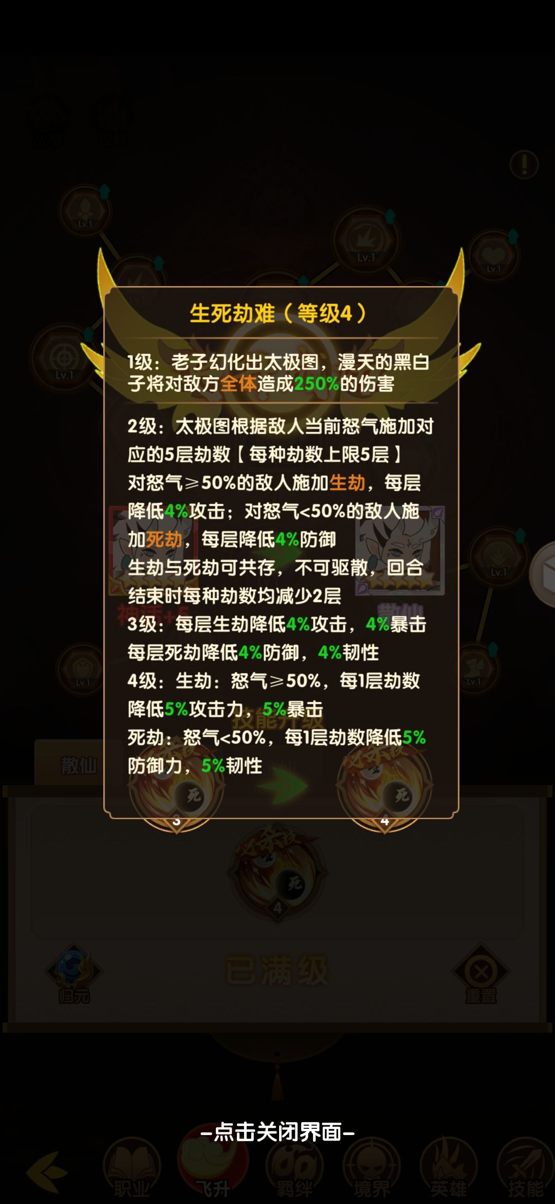 老子升散仙,继吉吉兔子之后的第三个散仙角色。还是觉得既然都养到五星了不升个散仙不得劲。看了下地仙和金仙的技能加成,感觉本人平民没必要去弄了,升一下散仙还是比地仙和金仙有性价比。同时预祝各位中秋国庆快乐!