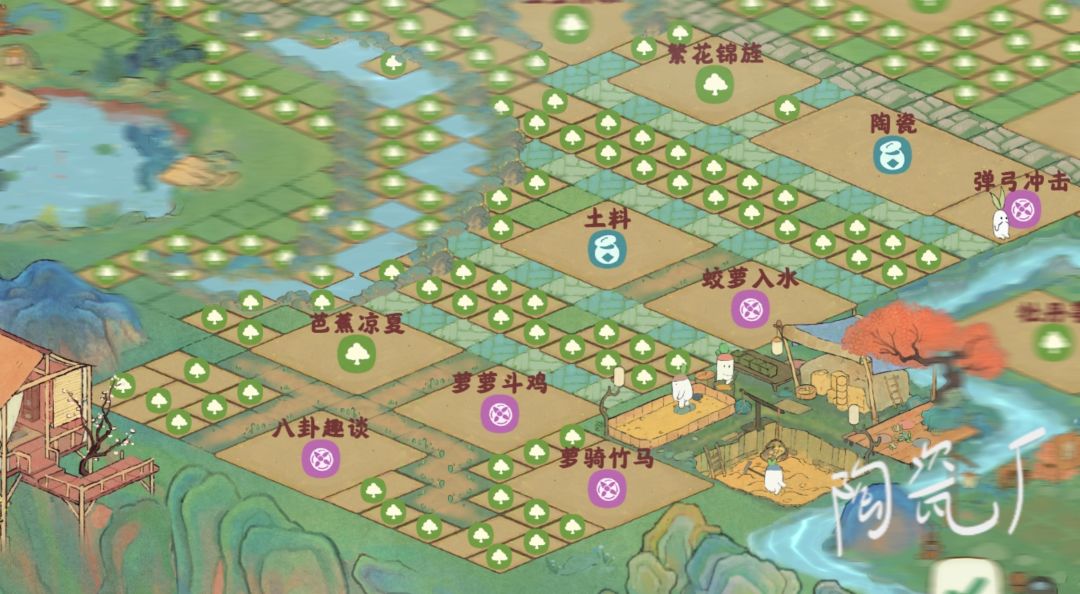 桃源深处有人家如何布局 桃源深处有人家布局 之前刷过一篇帖子的布局是娱乐建筑+工坊+部分作物土地,首先每个小作坊配置是:主要工作场地+娱乐设施+作物原产地,订单里需要的多余的作物怎么办,下面我们直接按