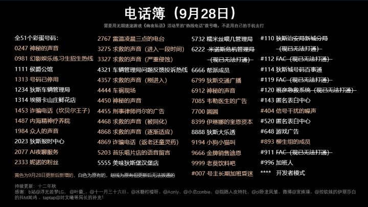 无期迷途 幽夜私语 热线电话簿 新增大批彩蛋电话,全网最全51个号码收集在这里了!
