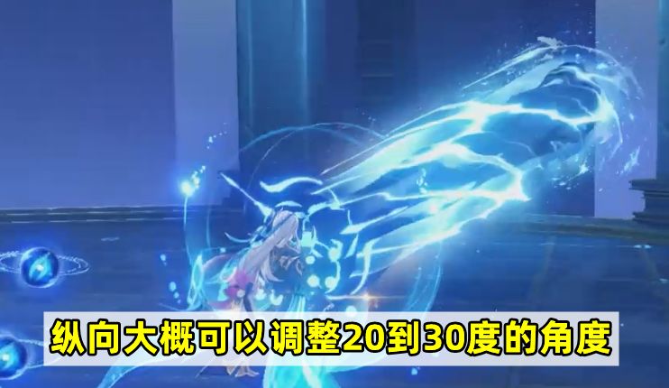 至于横向的可调整角度,则是360度,调整的速度取决于你转视角的速度。如果跟我一样是手柄玩家的话,可能比较难发挥优势;但如果是使用键鼠的话,只要那维莱特练度够高,就可以尝试站在场地中央“转圈圈”了。